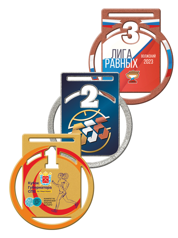 Собственное производство позволяет предлагать заказчикам широкий ассортимент медалей из разных материалов: стекла, акрила, металла, дерева. У нас можно купить комплекты медалей, тематические медали для разных видов спорта, с государственной и региональной символикой.