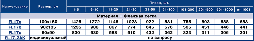 | FL17-ZAK | Флажная сетка | Полное запечатывание с одной стороны | На заказ | - | 0 руб. | ||